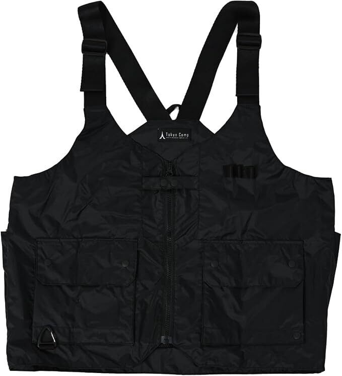 【TAKIBI VEST】TokyoCampが独自開発した防炎生地FENICを採用した焚き火ベスト。今回は210Dナイロンリップストップ生地をメイン素材にしており、摩耗性や耐久性にも優れています。フロントに2つのポケット、ループとDカンがあり収納性も抜群。内側はメッシュなので、通気性も◎