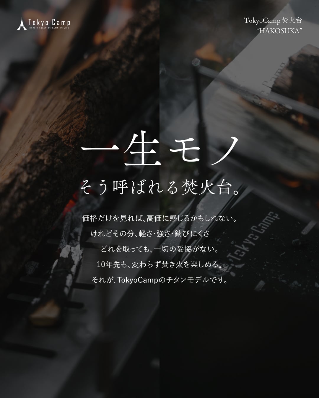 【抽選販売決定/限定価格 ¥29,800】TokyoCamp 焚き火台 “HAKOSUKA” Titanium Model